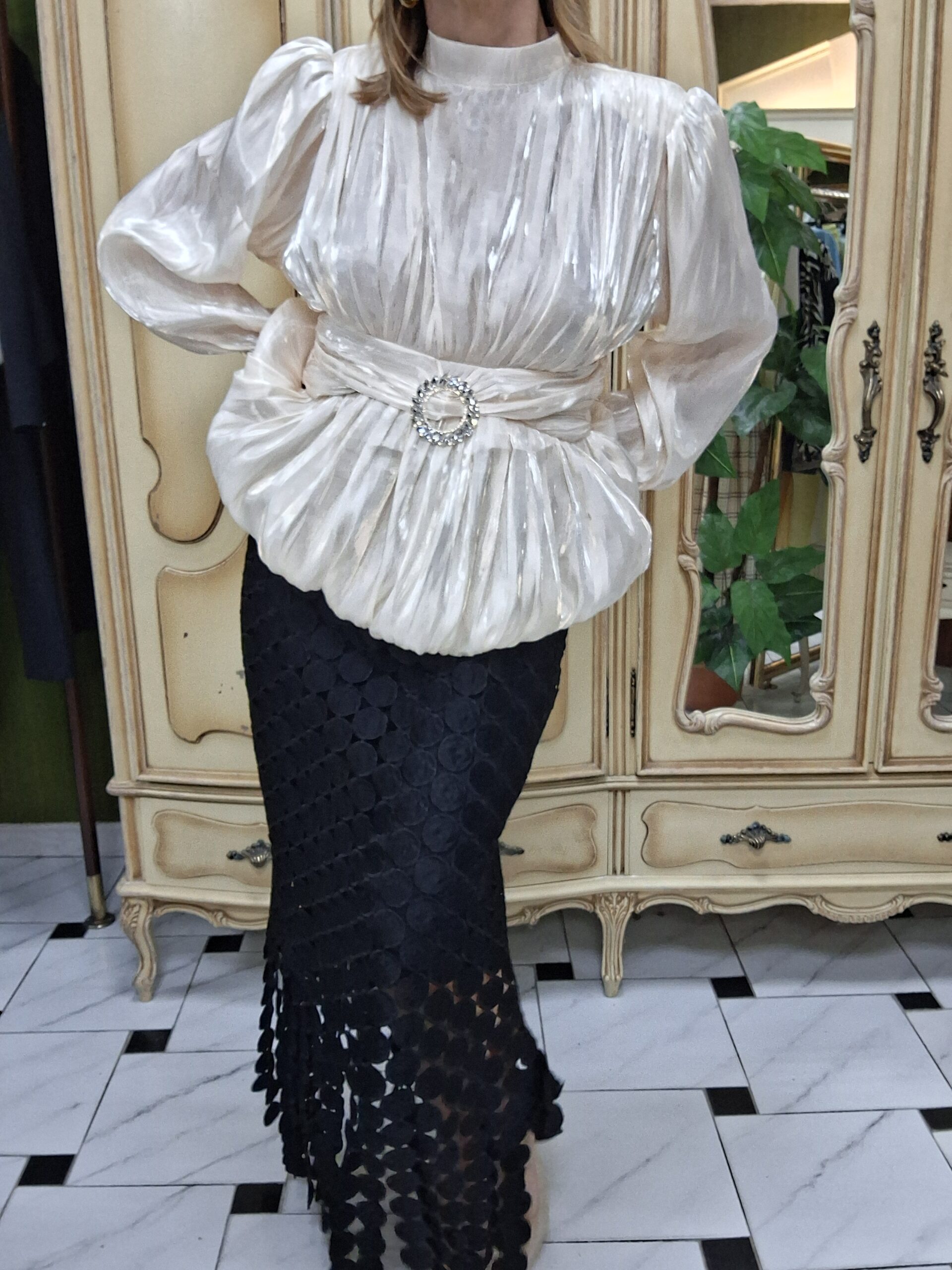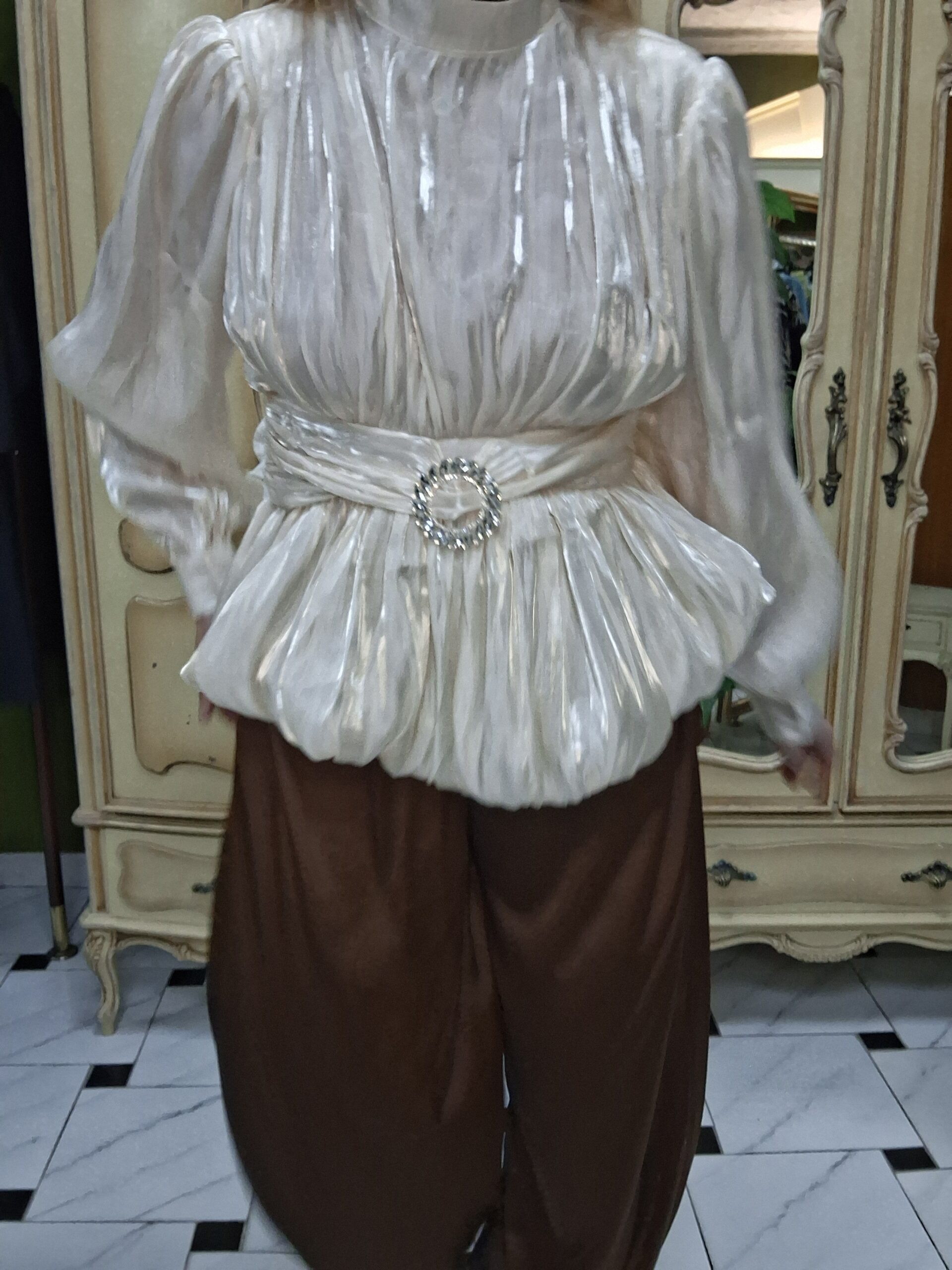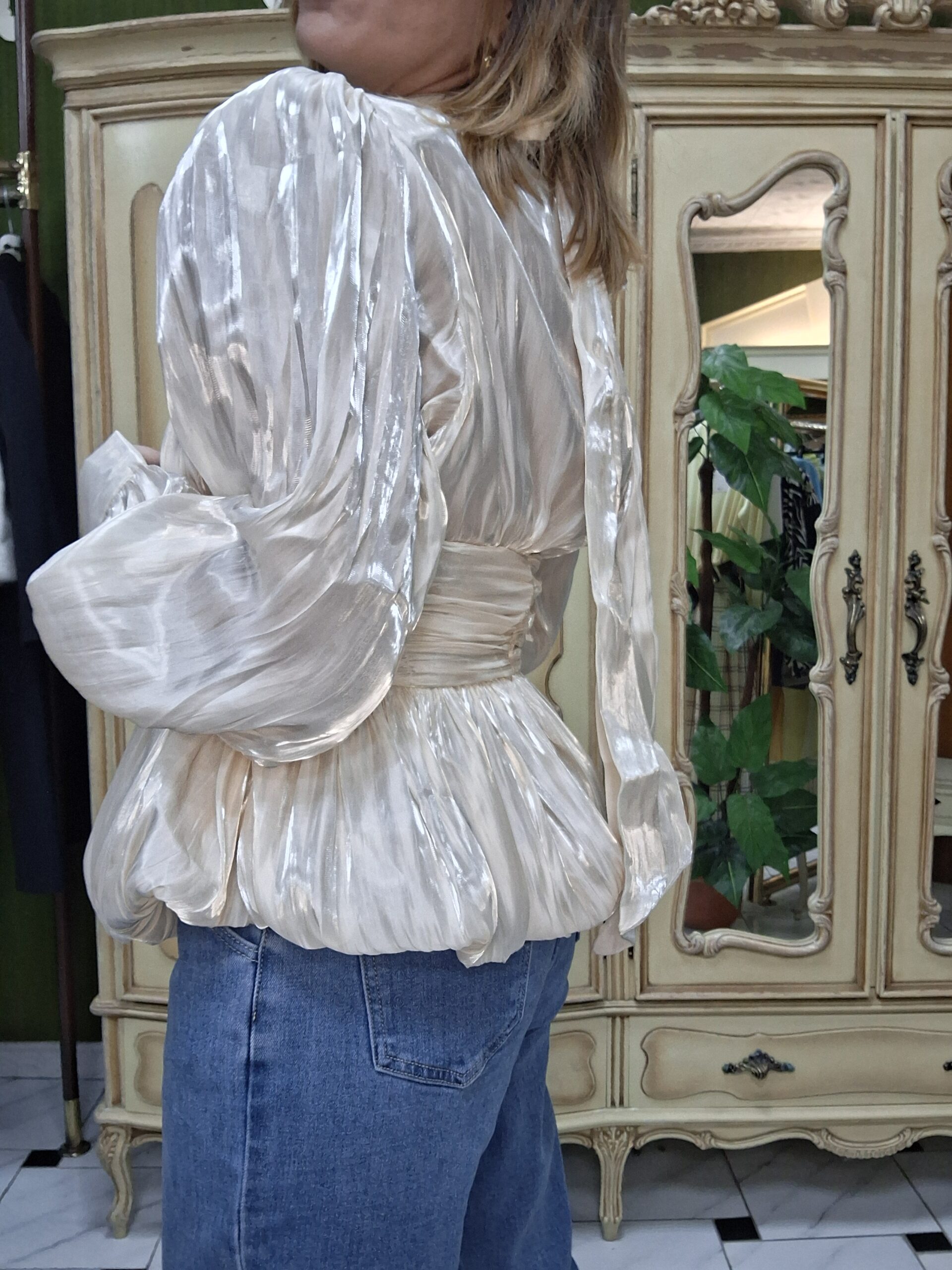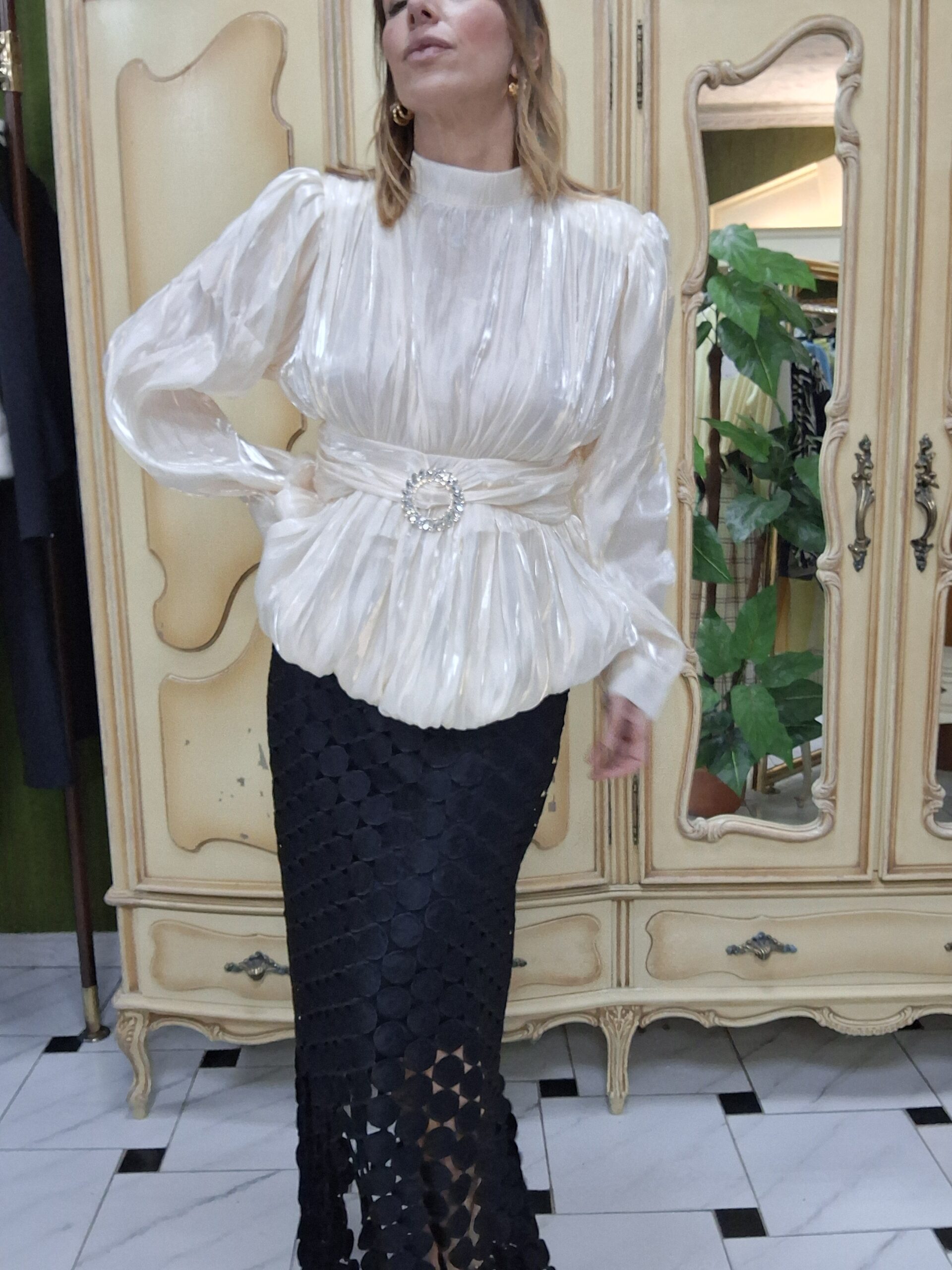 Eleva tus looks de temporada con esta blusa de mujer perfecta para celebraciones especiales de primavera, una prenda elegante y con estilo que combina tendencia y sofisticación. Su corte globo y mangas farol aportan volumen y movimiento, creando una silueta moderna y favorecedora.