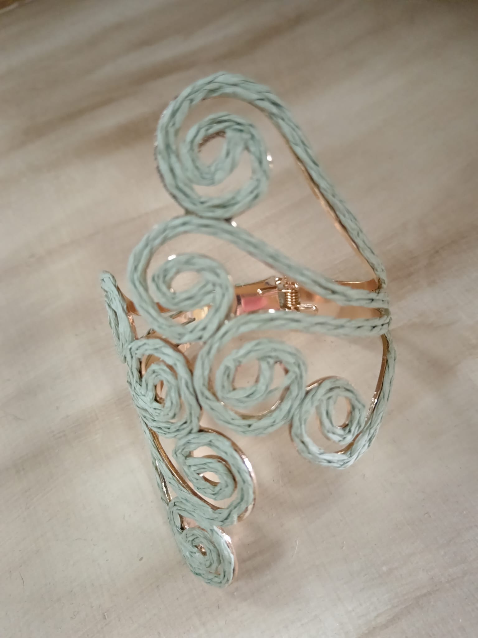 Brazalete de acero en color dorado ribeteado de adornos en color verde agua