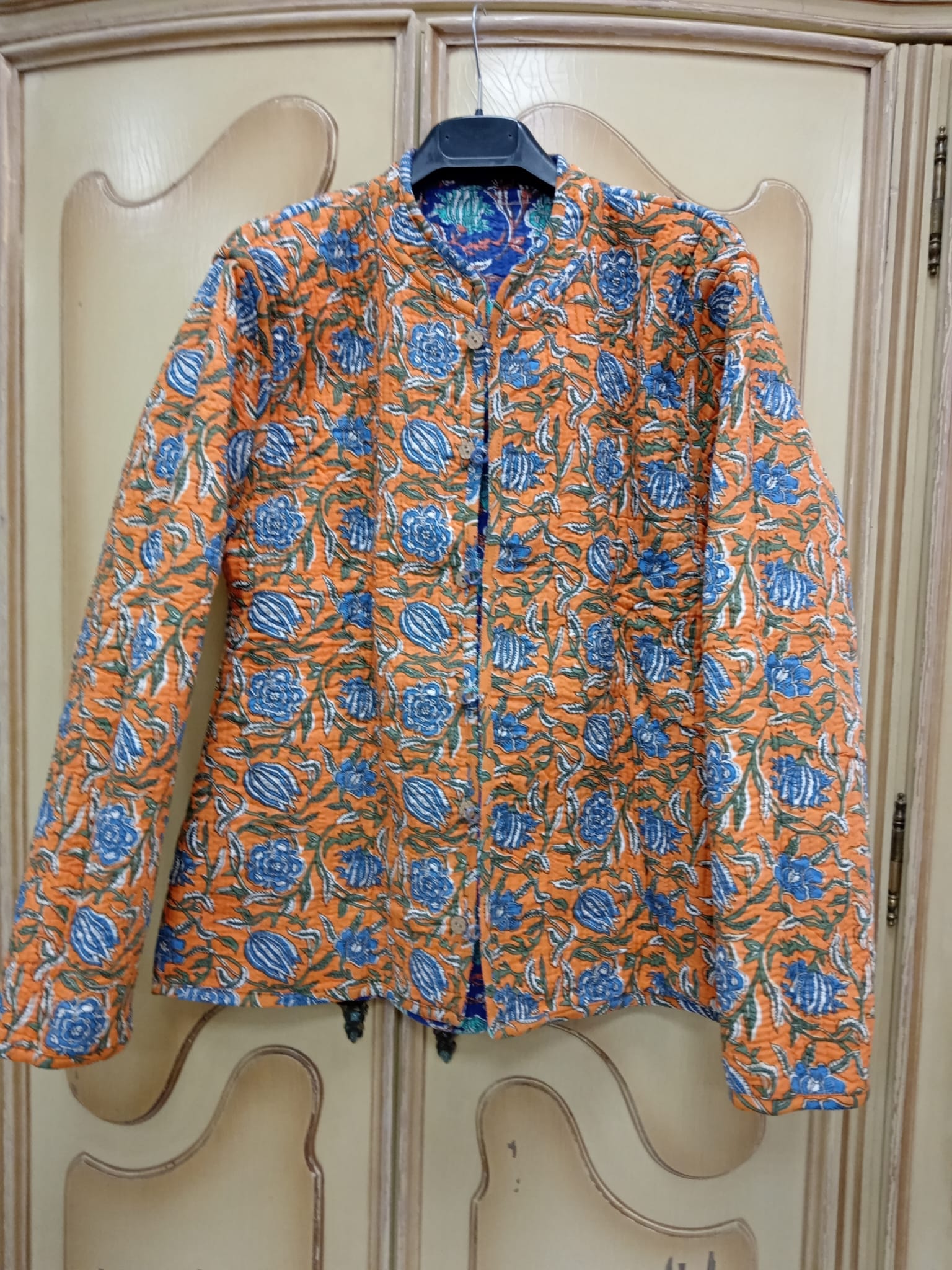 Chaqueta reversible de mujer con un diseño versátil y lleno de personalidad. Presenta estampados alegres, bonitos y diferentes que aportan un toque único a cualquier look. Por un lado, cuenta con botones forrados en el mismo tejido, creando un acabado elegante y armonioso; por el otro, incorpora botones de madera que añaden un estilo más natural y casual. Perfecta para combinar en distintas ocasiones, esta chaqueta reversible ofrece dos estilos en una sola prenda, destacando por su originalidad, comodidad y atención al detalle. Ideal para quienes buscan moda femenina diferente, funcional y con encanto.