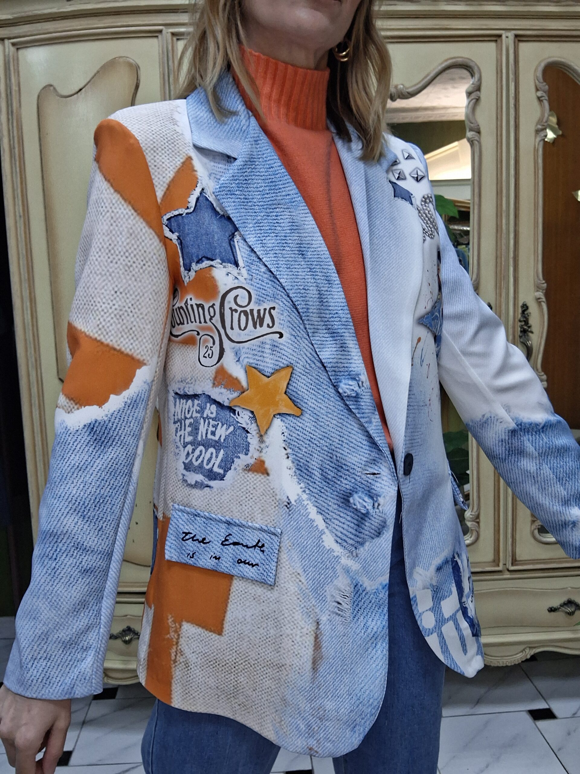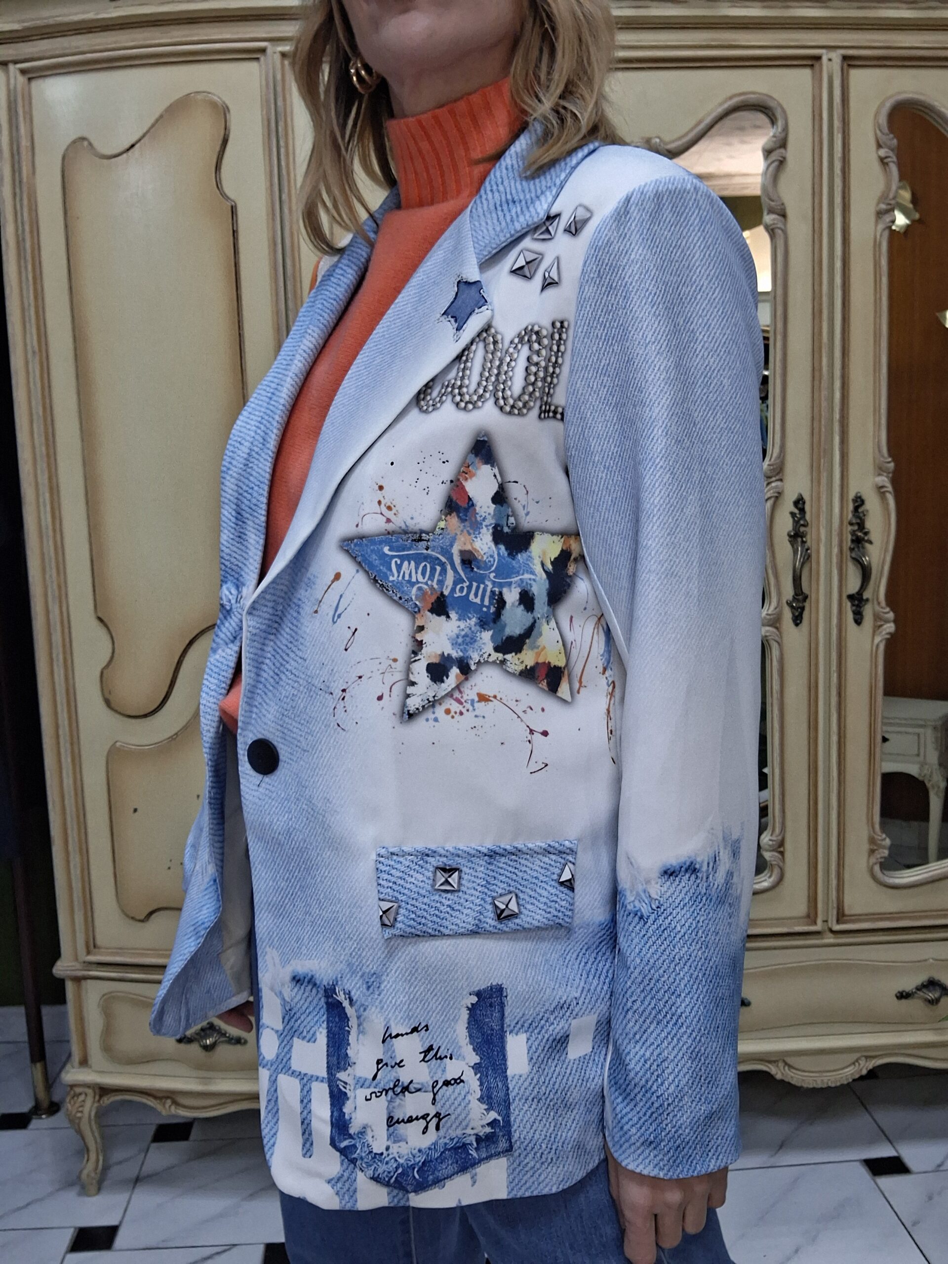 Atrévete a destacar con esta chaqueta de estampaciones divertidas y coloridas, una prenda original que transforma cualquier look en una declaración de estilo. Su diseño combina diferentes prints llenos de personalidad, perfectos para quienes buscan un outfit alegre, creativo y lleno de energía.