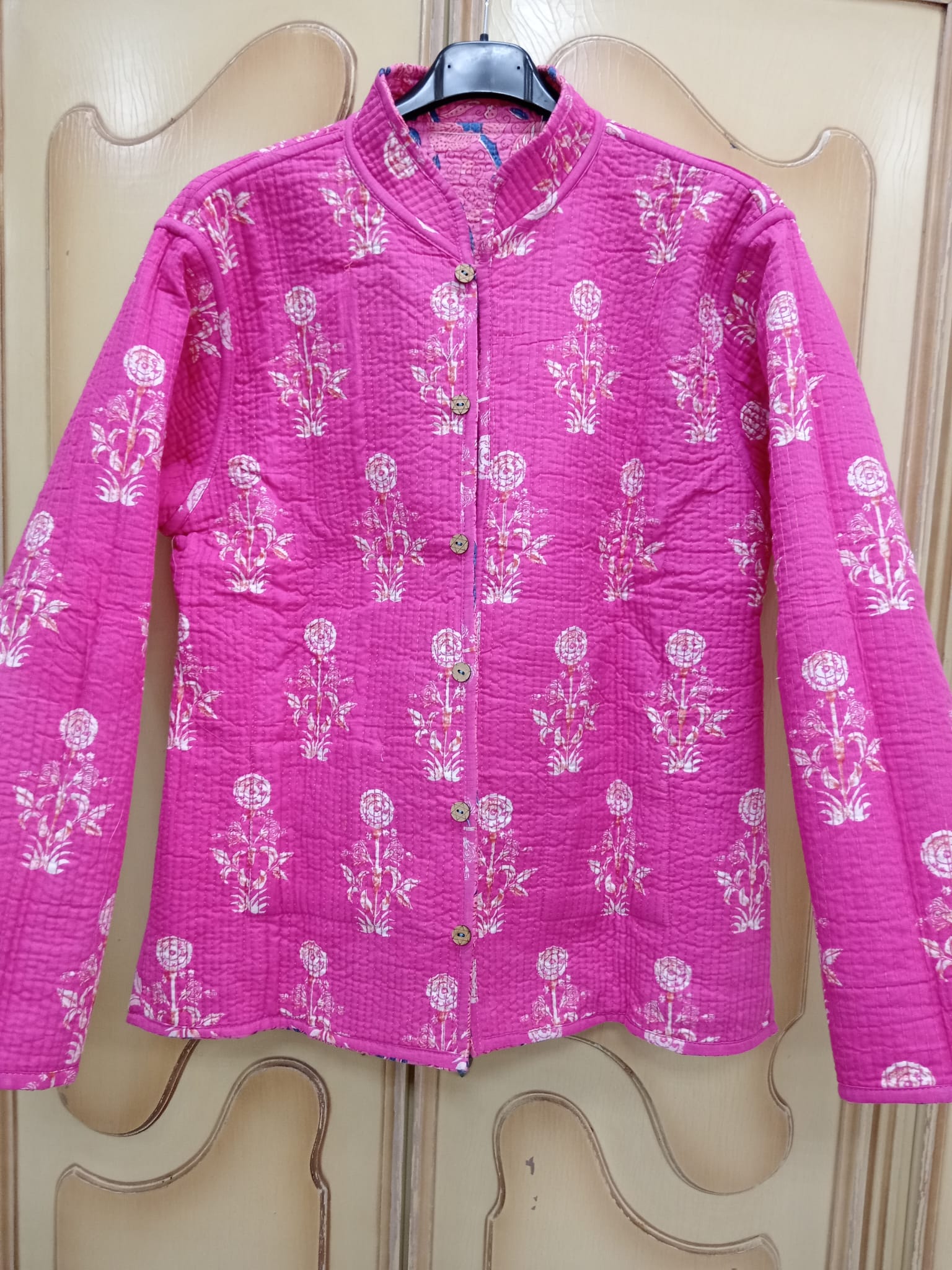 Chaqueta reversible de mujer con un diseño versátil y lleno de personalidad. Presenta estampados alegres, bonitos y diferentes que aportan un toque único a cualquier look. Por un lado, cuenta con botones forrados en el mismo tejido, creando un acabado elegante y armonioso; por el otro, incorpora botones de madera que añaden un estilo más natural y casual. Perfecta para combinar en distintas ocasiones, esta chaqueta reversible ofrece dos estilos en una sola prenda, destacando por su originalidad, comodidad y atención al detalle. Ideal para quienes buscan moda femenina diferente, funcional y con encanto.