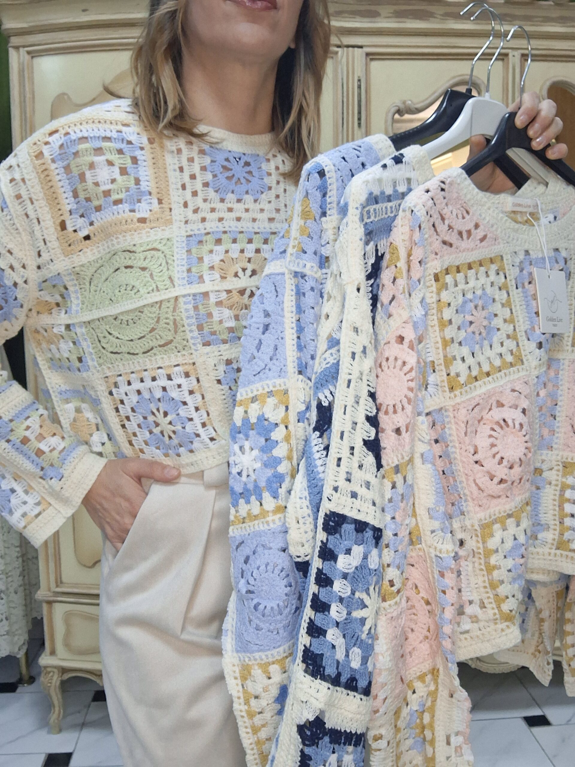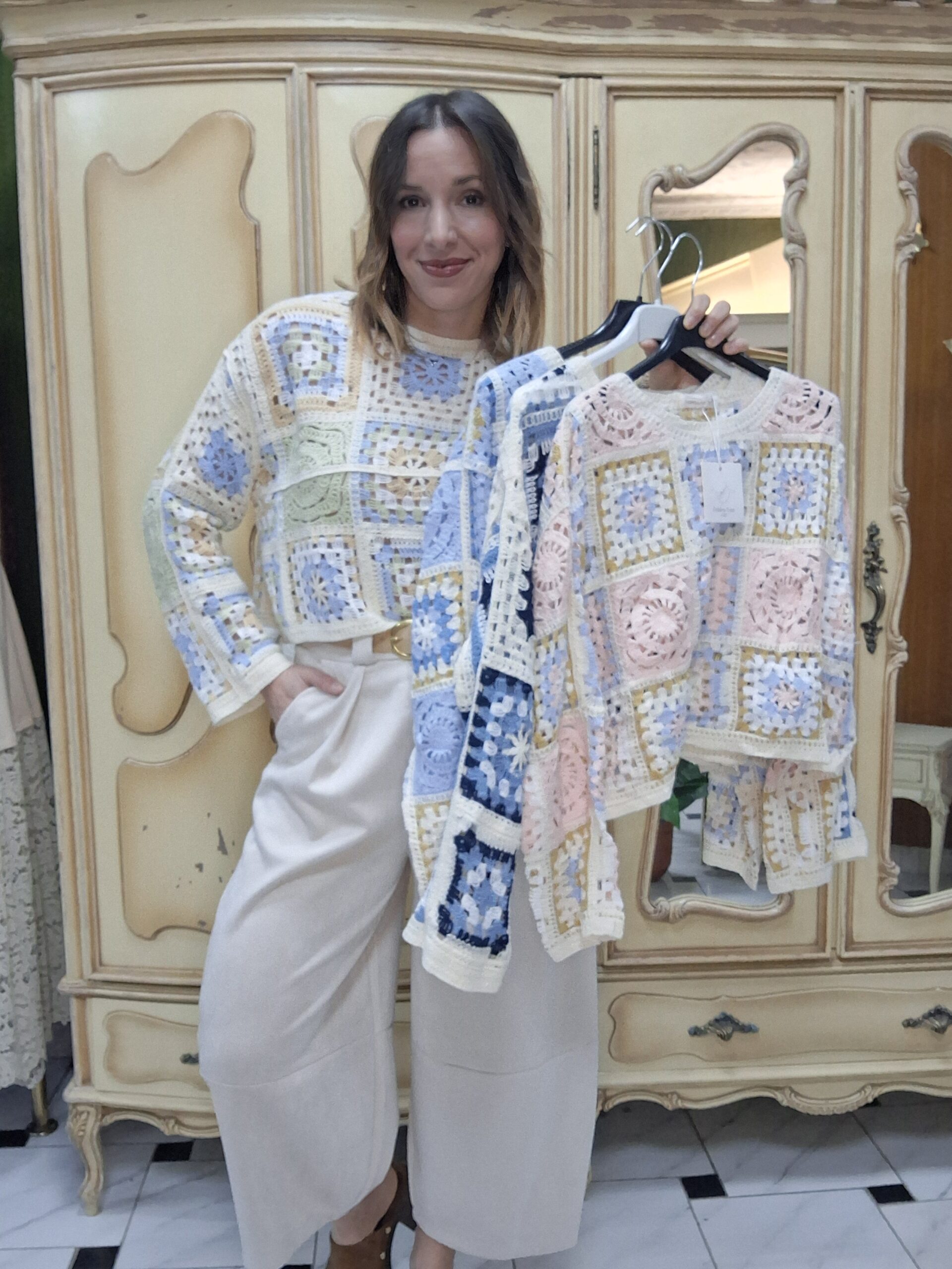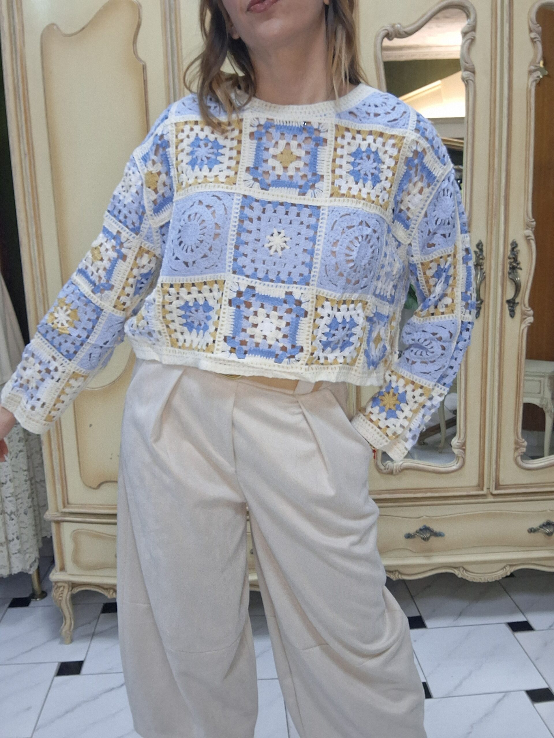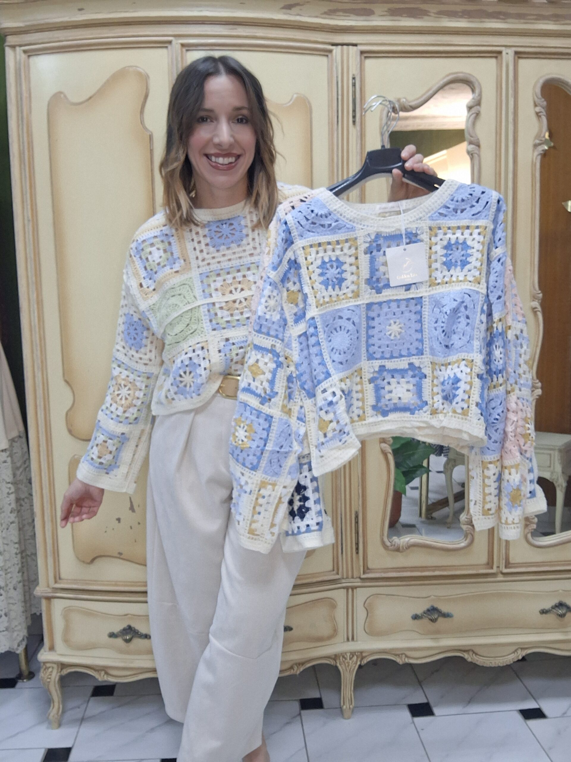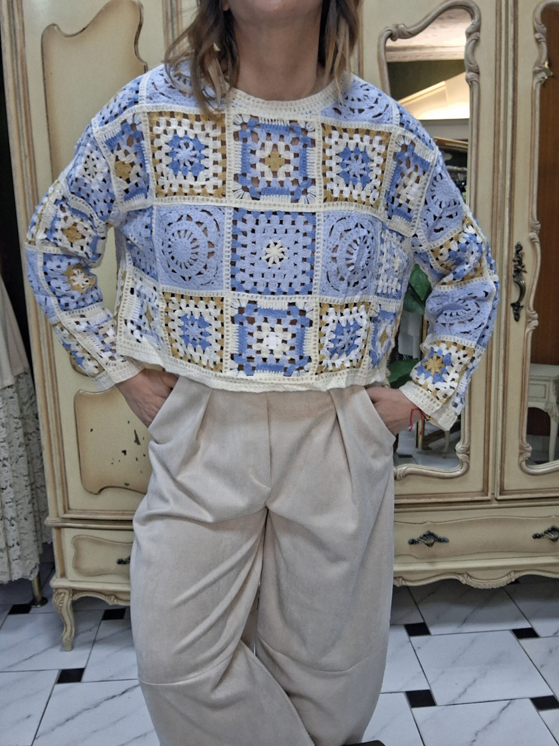 Jersey de crochet para mujer, una prenda imprescindible que combina estilo artesanal y tendencia. Su diseño tejido en crochet aporta un aire bohemio y elegante, perfecto para crear looks únicos y con personalidad. Con un acabado ligero y transpirable, este jersey es ideal para entretiempo o para añadir un toque especial a cualquier conjunto. Su versatilidad permite combinarlo fácilmente con jeans, faldas o vestidos, adaptándose tanto a estilos casuales como más sofisticados. Un básico renovado que destaca por su textura y detalles delicados.