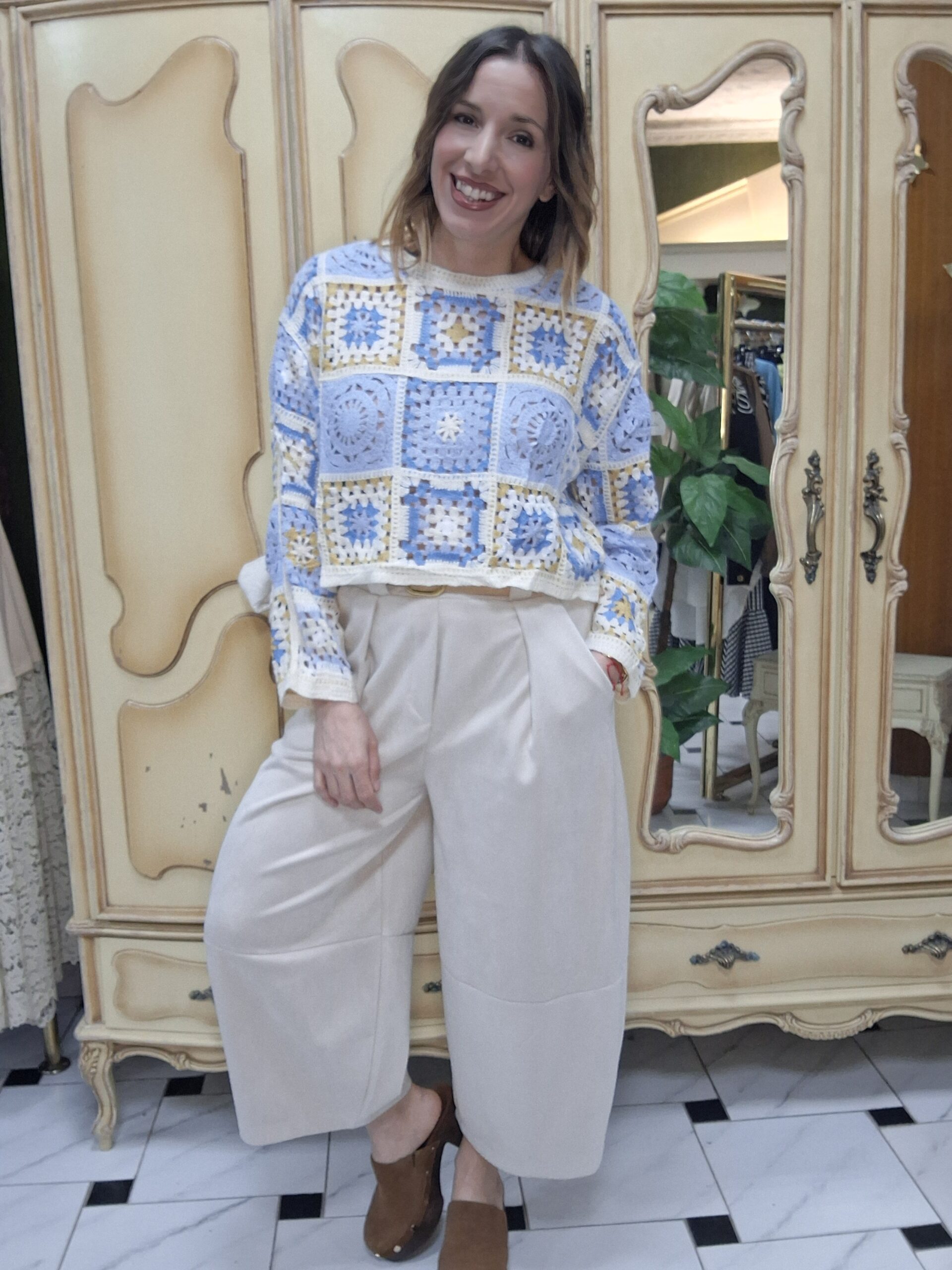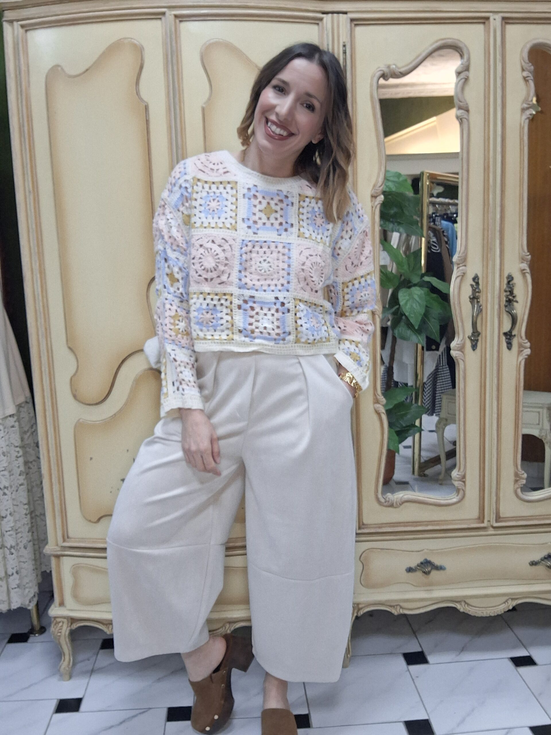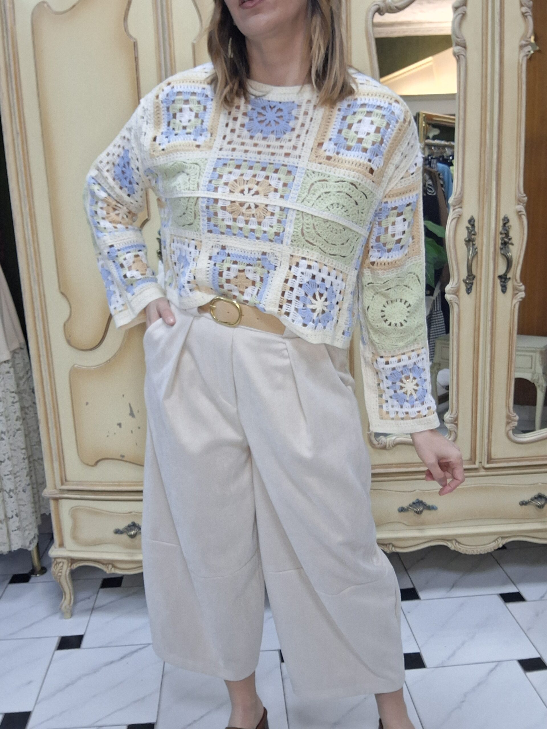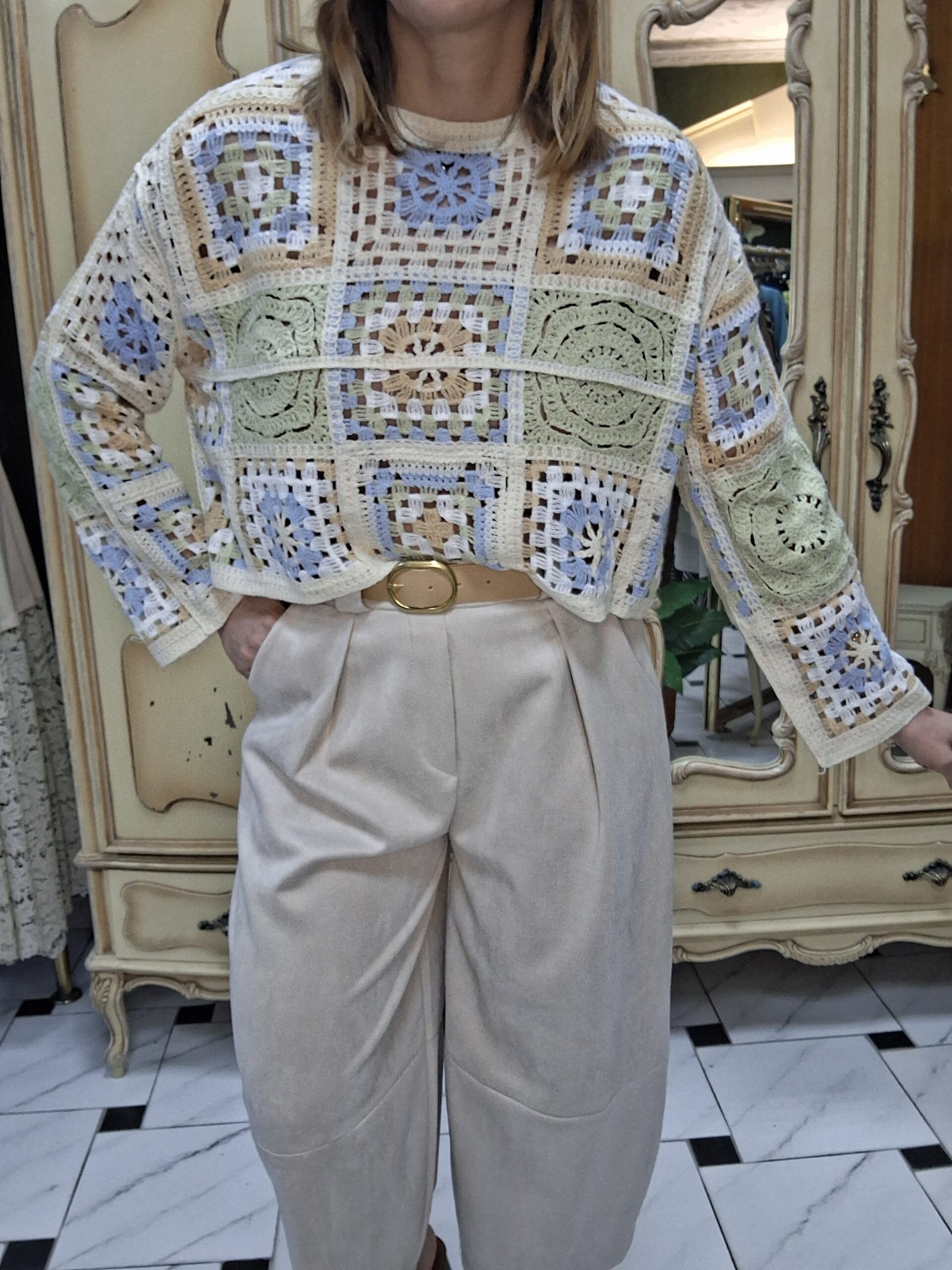 Jersey de crochet para mujer, una prenda imprescindible que combina estilo artesanal y tendencia. Su diseño tejido en crochet aporta un aire bohemio y elegante, perfecto para crear looks únicos y con personalidad. Con un acabado ligero y transpirable, este jersey es ideal para entretiempo o para añadir un toque especial a cualquier conjunto. Su versatilidad permite combinarlo fácilmente con jeans, faldas o vestidos, adaptándose tanto a estilos casuales como más sofisticados. Un básico renovado que destaca por su textura y detalles delicados.