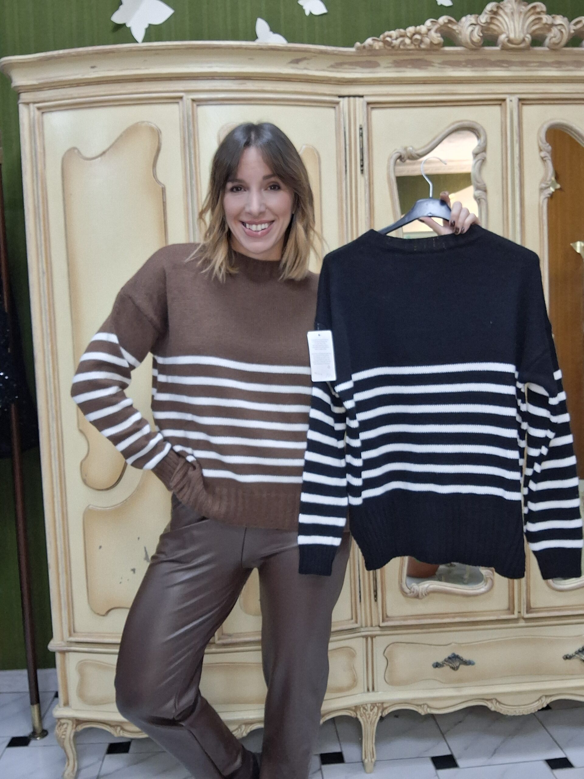 Jersey de rayas disponible en tres colores: negro, burdeos y marrón