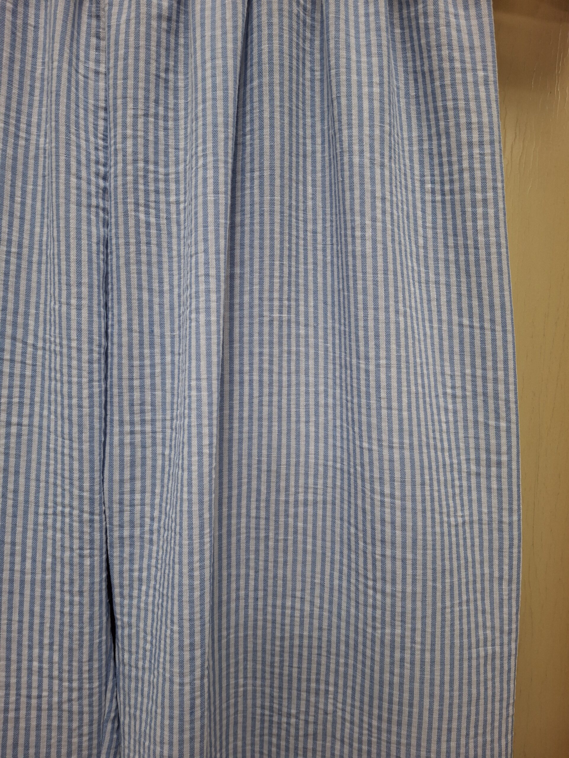 Pantalón de mujer con rayitas en color celeste y corte recto ancho – Comodidad y estilo con aire primaveral